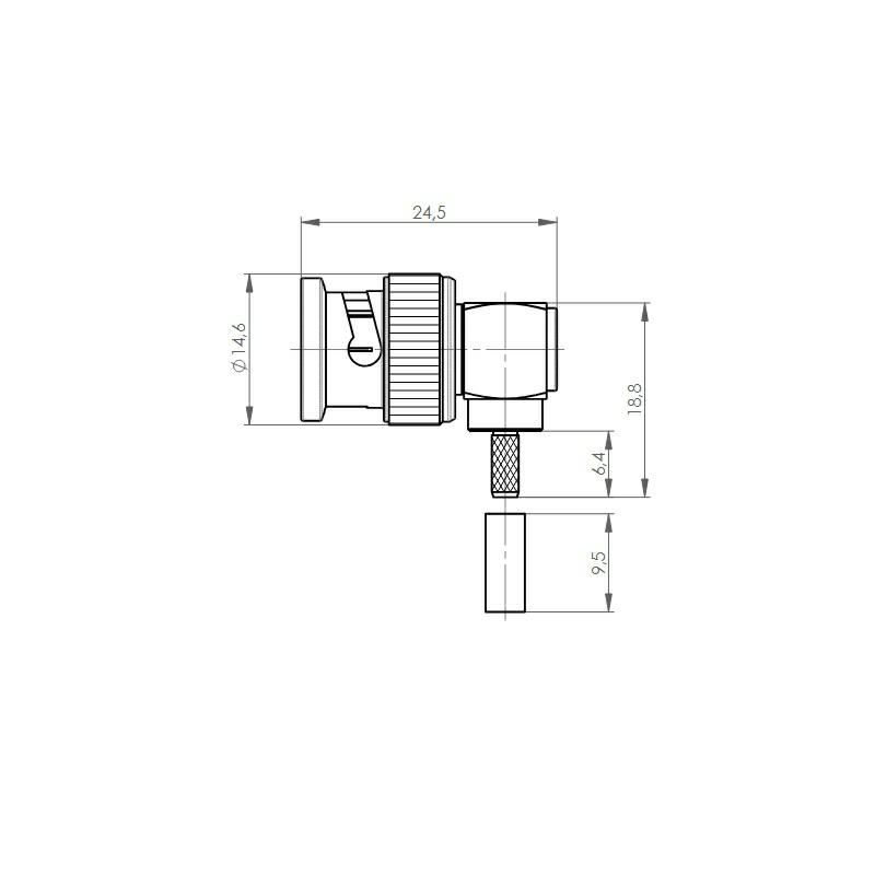 BNC-M WTYK KĄTOWY NA RG-174/316 lut/zagn