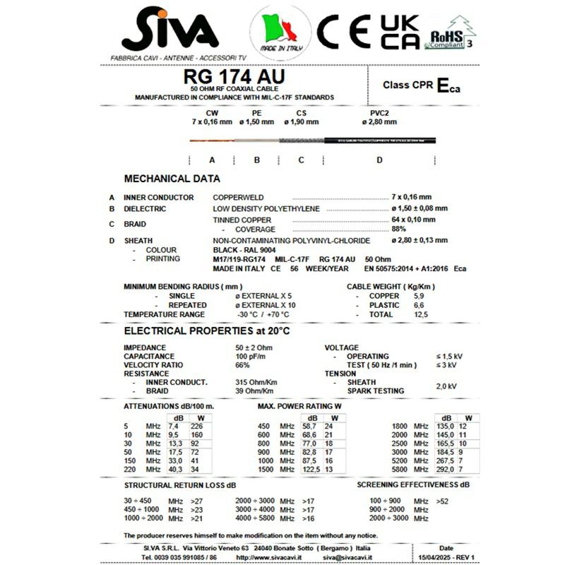 KABEL KONCENTR. RG-174 AU 2,8mm linka
