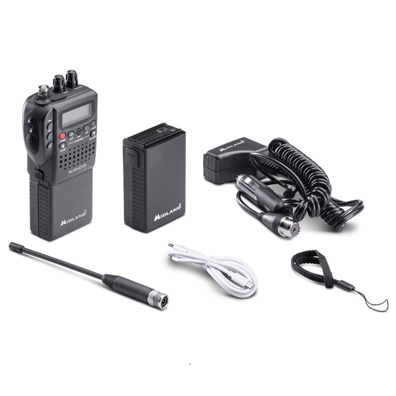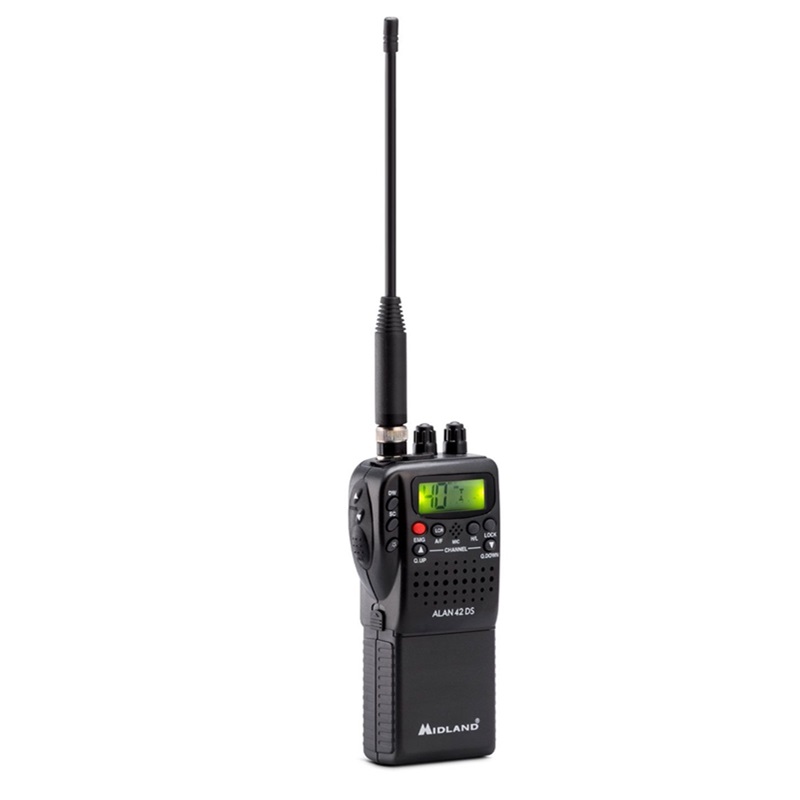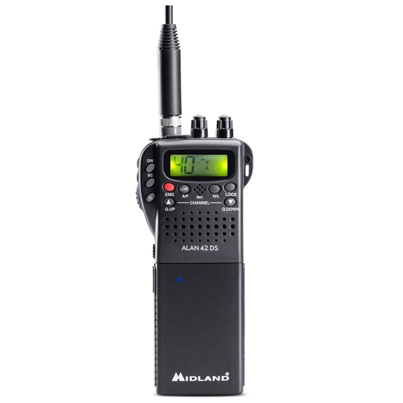 ALAN 42 DS jest niewielkich wymiarów przenośnym radiotelefonem CB z możliwością szybkiej adaptacji w samochodzie.Najnowszy model DS Lithium – akumulator litowo-jonowy 3-ogniwowy o pojemności 2800 mAh.Podstawowa charakterystka: * akumulator litowo-jonowy 2800 mAh * DS – automatyczna kontrola szumów squelch * Q UP/Q DOWN szybka zmiana kanałów co 10 * Scan automatyczne szukanie rozmowy * Szybki wybór kanału priorytetowego 9 (alarmowego) * DW przycisk umożliwia monitorowanie dwóch kanałów w tym samym czasie * LOCK blokada klawiatury * H/L zmiana mocy nadawczej 4/1 W * Ilość kanałów modulacja: 40 AM/FM * Moc wyjściowa: 4 W * Częstotliwość: 26,960 MHz – 27,400 MHz * Impedancja anteny: 50 Ohm * Zasilanie: 12V
